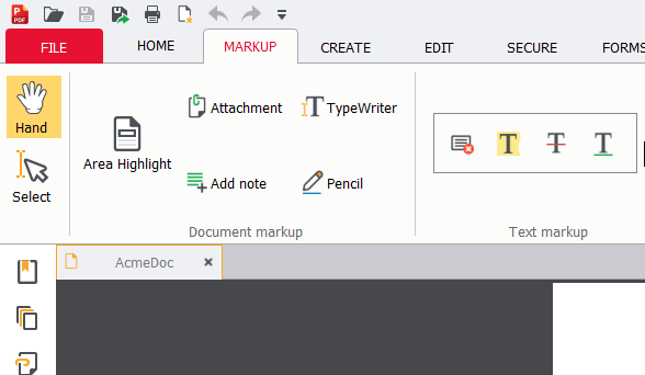 Sejam carimbos, formas, marcadores ou uma ferramenta de máquina de escrever, o PDF Pro oferece um conjunto completo de ferramentas para o usuário final anotar seus PDFs sem alterar o conteúdo subjacente. Essas Anotações podem ser alternadas para ficarem visíveis ou ocultas, facilitando o trabalho com marcações.